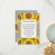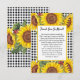 Envoyez une note de remerciement personnalisée avec cette carte de remerciement personnalisable, qui présente un motif classique à carreaux noirs et trois tournesols jaunes vibrants. Ajoutez facilement votre propre message personnel dans la zone personnalisable. Si vous préférez un message manuscrit, supprimez simplement le texte d'exemple dans la zone de personnalisation avant le paiement. Parfait pour les douches de mariage, les douches de bébé, les anniversaires ou toute occasion spéciale.