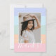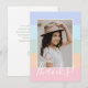 Cette carte de remerciement photo simple et élégante présente un design à rayures en blocs de couleur en violet pérywinkle, bleu aqua, vert menthe, pêche corail et rose, ainsi que le texte élégant "Merci !". Des modèles de texte sont inclus au verso pour la personnalisation. Parfait pour envoyer après une fête d'anniversaire pour une préadolescente ou une adolescente ! Pour des demandes de conception personnalisée ou de produits, veuillez me contacter (Tracey) à orabellaprints@outlook.com.
