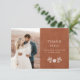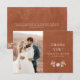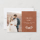 Partagez votre gratitude avec cette carte de remerciement photo en terre cuite rustique, avec des tons terreux chauds et une photo personnalisée. Parfait pour les mariages, les enterrements de vie de jeune fille ou toute occasion spéciale ! Parfait pour un mariage bohème. Articles assortis dans notre boutique Cava Party Designs.