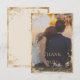 Envoyez cette belle carte de remerciement de mariage photo à tous vos proches pour les remercier gracieusement. Les accents rustiques de la dorure fausse embellissent votre photo préférée pour donner à cette carte un look chic et riche. C'est une carte charmante et au look vintage. Taillée dans un éclat de dorure fausse pour donner le ton d'une élégance romantique et classique. Des éclaboussures dorées terminent cette jolie note de remerciement de mariage. Parfaite pour toutes les saisons.