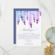 Carte de remerciement de mariage aquarelle Fleurs de wisteria avec votre photo préférée et le texte "Merci" dans une typographie violette moderne accentuée de fleurs de wisteria aquarelle bleue, violette et lavande. Fait partie d'une collection conçue par Evco Studio www.zazzle.com/store/evcostudio