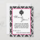 Remerciements Carte de remerciement plate 4x5 noire à damas rose