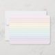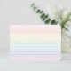 Avec un subtil arc-en-ciel pastel de rayures et de lignes multicolores d'un côté et de simples lignes RainbowRule de l'autre, cette carte plate est un moyen amusant et élégant d'ajouter une touche de couleur à vos notes de remerciement et à votre correspondance "juste parce que" avec vos proches.