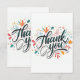 Une belle carte de remerciement présentant une typographie écrite à la main entourée de fleurs et de feuilles vibrantes. Parfait pour exprimer votre gratitude de manière élégante et sincère.