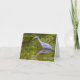 Carte blanche représentant un jeune héron cendré et son reflet sur la rivière Water of Leith à Édimbourg. Photo prise été 2025.