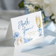 Remerciez vos invités avec style grâce à cette élégante carte de remerciement pliée, conçue pour correspondre à notre thème de mariage avec champagne bleu. Avec une illustration de flûte à champagne à l'aquarelle, des fleurs douces bleues et blanches, et un texte modifiable pour le nom de la mariée et la date, cette carte ajoute une touche personnelle et sincère à votre célébration. Parfaite pour coordonner votre suite de papeterie et faire sentir la mariée encore plus spéciale.