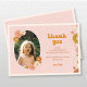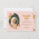 Remerciez vos invités dans un style rétro ! Ce design présente des fleurs sauvages dessinées à la main de manière fantaisiste, dans une palette de couleurs bohèmes de bruns et de terre cuite, beige, rose et jaune. Parfait pour les thèmes de fête rétro et bohème au printemps et en été. La photo et le texte du modèle sont faciles à personnaliser et c'est un beau souvenir pour vos amis et votre famille.