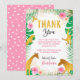 Carte de remerciement pour Baby Shower Animaux de la Jungle Rose