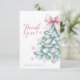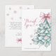 Célébrez l'arrivée de votre petite fille avec cette charmante carte de remerciement pour baby shower sur le thème de l'hiver. Avec un arbre de Noël sarcelle orné d'un délicat nœud rose blush et entouré de flocons de neige pastel, ce design élégant allie charme festif et touche coquette douce. Parfait pour créer un baby shower hivernal mémorable avec une ambiance fantaisiste et sophistiquée.
