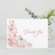 Envoyez vos sincères remerciements avec cette élégante carte de remerciement ornée de fleurs douces roses et d'un charmant motif de citrouille. Une façon charmante de conclure votre baby shower d'automne avec une touche féminine.