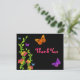 Cette carte de remerciement de style plat sauvage et funky comporte des vignes fleuries et des papillons néon vert, orange, rose, violet, jaune et bleu qui correspondent à l'invitation au Bat Mitzvah présentée ci-dessous. Si vous avez besoin d'autres articles assortis dans ce design, veuillez envoyer votre demande par courriel à niteowlstudio@gmail.com.
