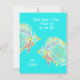 Note de remerciement pour les enfants à envoyer avec une illustration de poissons tropicaux. Deux poissons colorés nagent sur un fond bleu aqua brillant. Personnalisez avec du texte à deux endroits sur le devant. Un « merci » court avec signature est suggéré. L'arrière est vert avocat uni.