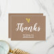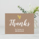 Élégante carte de remerciement de mariage avec cœur en faux foil doré et écriture blanche moderne pour être ma demoiselle d'honneur. Le recto et le verso de la carte sont en papier kraft faux.