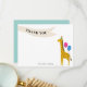 Cette carte de remerciement plate a beaucoup d'espace pour écrire un simple message de "merci" aux donateurs de cadeaux d'anniversaire après la célébration et présente une bannière amusante et un girafe portant un chapeau de fête avec des ballons attachés à sa queue.
