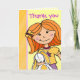 Jolie carte de remerciement graphique moderne pour filles après fête. Fille tenant son lapin blanc chanceux. Personnalisez cette carte avec le message de remerciement de votre choix. Création originale de Sarah Trett.
