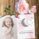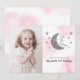Jusqu'à la lune ! 2e anniversaire avec lune et étoiles argentées sur fond aquarelle rose. Modèle de photo via Pixabay sous licence CC0 et doit être remplacé par votre propre photo