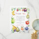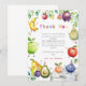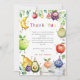Dites "merci beaucoup" de la manière la plus douce avec cette carte de remerciement colorée et fantaisiste Two-tti Frutti ! Conçue pour correspondre à une fête d'anniversaire de 2 ans sur le thème tutti frutti ou fruits, cette carte présente de délicieux fruits aquarelles - des bananes souriantes, des baies, des poires, des pommes et plus encore - portant tous des chapeaux de fête. Le lettrage "Merci" en couleurs arc-en-ciel ajoute une touche joyeuse et sincère.