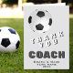 Carte moderne de remerciement pour l'entraîneur de football. La carte comporte un ballon de football noir et blanc. Grande carte pour remercier les entraîneurs sportifs, l'entraîneur de l'équipe de lycée, l'entraîneur papa ou maman, etc. Personnalisez n'importe quel texte sur la carte. Ajoutez le nom de l'entraîneur, le nom de l'équipe et l'année.