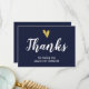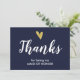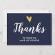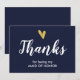 Élégante carte de remerciement avec un cœur en feuille d'or faux et un script blanc moderne pour ma demoiselle d'honneur. Le recto et le verso de la carte sont en bleu marine chic.