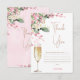 Pétales de fleurs aquarelles modernes et carte de remerciement pour mariage prosecco avec un arrangement de fleurs sauvages principalement rose, verre à champagne et pétales de fleurs. Cette carte de remerciement pour mariage fleurs sauvages comporte également un titre en calligraphie moderne.