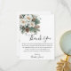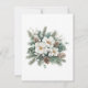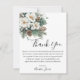 Carte de remerciement pour mariage d'hiver Snow In Love avec des feuilles vertes d'hiver, des fleurs blanches et un peu de neige pour capturer le thème hivernal