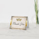 Carte de remerciement de mariage de conte de fée orné. Présentant des couleurs royales de luxe, or et argent et nacre. Cette carte de remerciement de mariage de conte de fée élégante et sophistiquée convient à tout thème de mariage ou mariage en noir et blanc. Apportant une touche d'élégance et de charme, vous enverrez des salutations à vos invités avec un style absolu avec cette carte de remerciement de mariage de conte de fée pour tous vos invités. Présence de fausses perles et de diamants sur les fioritures situées dans les coins. Une couronne royale est posée en bas à droite, ornée d'or et de bijoux. Une illustration de filigrane est posée sur un fond vintage et une bordure ornée encadre le centre texturé en papier orné. Des produits assortis peuvent être trouvés dans la section mariage de