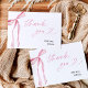 Ces cartes de remerciement pour la douche de mariée à ruban rose plié présentent un élégant ruban rose pour remercier vos invités avec gratitude. Ces cartes de remerciement sont une belle touche à votre douche de mariée avec notre décoration de douche de mariée "Elle noue le noeud" à ruban rose blush. Ces cartes de remerciement ajoutent non seulement un accent stylé à votre thème de douche de mariée, mais vous pouvez également écrire un mot personnalisé à vos invités pour montrer votre amour et votre appréciation pour leur soutien. Cette carte de remerciement significative est une façon charmante de montrer votre appréciation à votre famille et à vos amis !