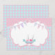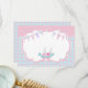 Jolie carte de remerciement sur le thème d'une soirée de spa pour filles en rose et bleu à pois et avec une guirlande de fête et du vernis à ongles.