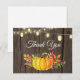 Carte de remerciement Rustique d'Automne avec Citrouille en aquarelle. Fond en bois rustique. Grange rétro vintage de campagne. Guirlande lumineuse. Amour et remerciements, police de caractères script belle. Ajoutez votre message au verso ou laissez-le vide pour une écriture manuscrite. Pour une personnalisation supplémentaire, veuillez cliquer sur le bouton "Personnaliser" et utiliser notre outil de conception pour modifier ce modèle.