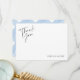 Le dos présente un motif à carreaux gingham bleu pâle. Le devant comporte une police de style écriture manuscrite avec les mots 'merci' et le nom de votre choix en bas de la carte qui peut être personnalisé avec le texte de votre choix.