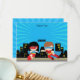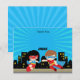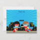 Carte de remerciement sur le thème des super-héros avec super garçon et super fille.