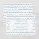 Exprimez votre gratitude avec cette carte de remerciement inspirée de la mer, avec des vagues nautiques bleues douces et un thème piscine/plage. Idéale pour les fêtes d'anniversaire des enfants, en particulier celles organisées au bord de la piscine ou à la plage, elle capture une ambiance côtière amusante. Personnalisez-la avec votre message pour un effet personnel, et associez-la facilement aux invitations, numéros de table et autres papeteries de cette collection sur le thème des vagues.