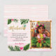 Carte de remerciement avec mahalo, design tropical et fond rose.