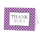 Élégantes cartes de remerciement violettes à pois pour toutes occasions avec des pois blancs sur fond violet et un message de remerciement au centre sur le devant. L'intérieur peut être personnalisé avec votre propre message ou facilement supprimé pour laisser la carte vierge pour un message manuscrit.