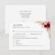 Nous vous présentons notre carte de réponse de mariage 'Tropical Rose Garden', un canevas immaculé qui capture l'essence d'un jardin de roses en fleurs. Élevez vos préparatifs de mariage avec cette pièce méticuleusement conçue pour encapsuler la romance de votre jour spécial. Cette carte de réponse non seulement collecte élégamment les réponses de vos invités, mais ajoute également un élément d'élégance raffinée à votre papeterie de mariage.