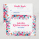 Assurez à vos invités une réponse élégante avec notre carte de réponse RSVP Floral Quinceanera Fiesta Mexicana. Cette carte élégante présente un fond blanc immaculé orné de motifs floraux turquoise, orange et rose vibrants, qui complètent parfaitement la typographie rose vif et bleu royal. Conçue pour capturer l'esprit festif d'une Quinceañera, cette carte de réponse RSVP offre un moyen beau et pratique pour les invités de confirmer leur présence. Fabriquée à partir de matériaux de haute qualité, elle offre à la fois un attrait visuel et une durabilité. Ajoutez une touche de sophistication à votre organisation d'événement avec la carte de réponse RSVP Floral Quinceanera Fiesta Mexicana.