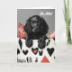 Irish Water Spaniel Puppy Valentine. Canine cousue contre un arrière - plan contemporain en rouge, noir et blanc. Pas de fleurs, juste des coeurs et des sacs de tendresse. L'intérieur est laissé vide pour votre propre message. Le texte à l'avant est modifiable, tout comme le texte et le logo à l'arrière de la carte.