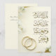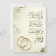 Célébrez l'amour et la foi avec cette élégante carte de prière de mariage islamique présentant une calligraphie arabe, des fleurs blanches délicates et des anneaux de mariage dorés. Un design intemporel qui mélange harmonieusement tradition et style moderne. Parfait pour les cérémonies de Nikah, les mariages musulmans et les bénédictions sincères pour les jeunes mariés. Personnalisez pour un souvenir unique.