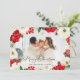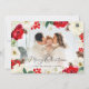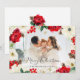 Carte de voeux photo de Noël aquarelle conçue avec une verdure colorée et des fleurs rouges. La plupart des lettres est modifiable - cliquez sur le bouton "Customiser plus" pour modifier. Objets correspondants dans notre magasin Conception de la fête Cava