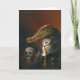 Cette carte de voeux est illustrée d'un crocodile victorien souriant. Dans l'arrière - plan est une sculpture humaine.