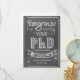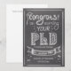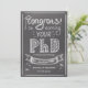 Ce produit est une carte de félicitations ou de vœux pour un diplômé de doctorat couronné de succès. C'est un beau cadeau de la part de la famille, des amis et des collègues lors de la soutenance de thèse. Ce design unique présente un tableau noir avec le texte "Félicitations pour l'obtention de votre doctorat" et un texte personnalisable.