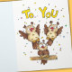 Envoyez à quelqu'un cette jolie carte de hibou pour lui souhaiter un joyeux anniversaire ! Un à l'avant il y a trois hiboux, chacun sur une branche différente, devant un ciel bleu. La première est de chanter "Hoo-ppy" (Heureux avec un accent faible), la seconde est de chanter "Anniversaire". La troisième est perplexe et demande "à qui ?". L'un à l'intérieur de la carte, les deux autres hiboux ont surgi en l'air, criant "À vous !". Le troisième hibou est en dessous d'eux, se mouillant d'oreille en oreille.