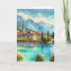 Cette carte de voeux présente un portrait aquarelle du lac Léman en Suisse.