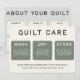 Une couverture est un travail d'amour, et devient souvent un héritage familial. Lorsque vous offrez une couverture, utilisez cette carte pour aider le destinataire à apprendre comment prendre soin de sa nouvelle et précieuse couverture ! Les couvertures s'améliorent lorsqu'elles sont aimées, et cette carte encouragera votre destinataire à l'utiliser réellement.