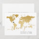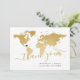 Carte de remerciements plat Gold fausse feuille du monde avec un message de remerciement préimprimé personnalisé au dos, parfait pour envoyer après une destination mariage ou une célébration de thème de voyage. Le marqueur d'emplacement du coeur peut être déplacé à l'aide de l'éditeur de conception.