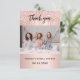 Une carte de remerciement photo moderne pour une baby shower de mariage. Un fond doré rose orné de fausses gouttes de paillettes, aspect de peinture qui coule. Personnalisez et ajoutez votre photo et votre note de remerciement.