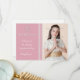 carte photo religieux en rose avec un habillage dentelé et une croix blanche décorative. Parfait pour les cartes de remerciements, les annonces ou les invitations à la communion, à la confirmation ou au baptême.