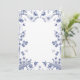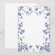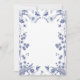 La conception de carte plate de flore et de faune bleue et blanche est prête à être personnalisée avec les noms de votre choix. Avec des papillons, des abeilles, des fleurs, des oiseaux et des plantes.