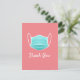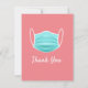 Un message simple et sincère qui peut être personnalisé avec votre propre message personnalisé pour les employés médicaux, les travailleurs essentiels, les membres de la communauté, les premiers intervenants et les travailleurs de première ligne. Graphique de masque facial bleu sur fond rose avec police blanche.