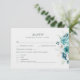 Remerciements Carte RSVP de mariage turquoise et non blanc pour